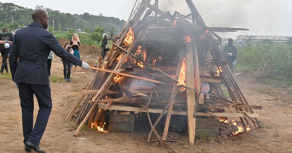 Ivory Coast officials on Tuesday burned three tons of scales of the pangolin, the most trafficked mammal on Earth.